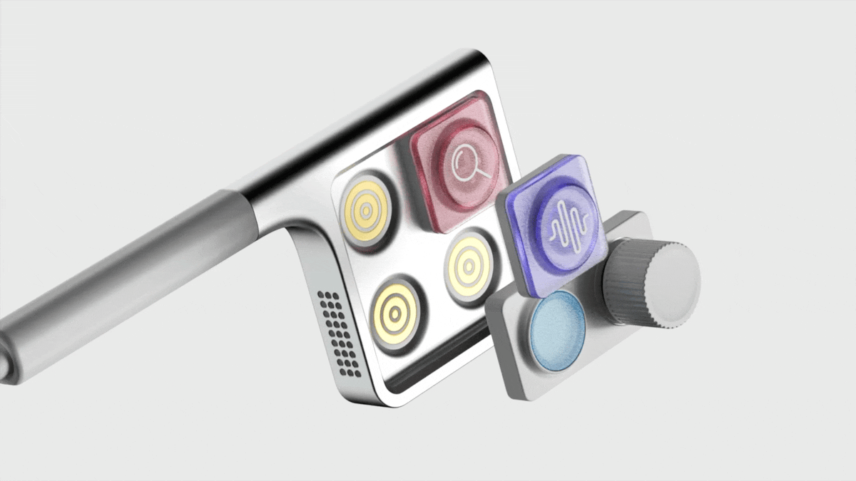 Programmable Action buttons allow the wearer to activate routines at the click of a button, either suggested by talk after learning users habits, or customised by the user via voice or smartphone input.